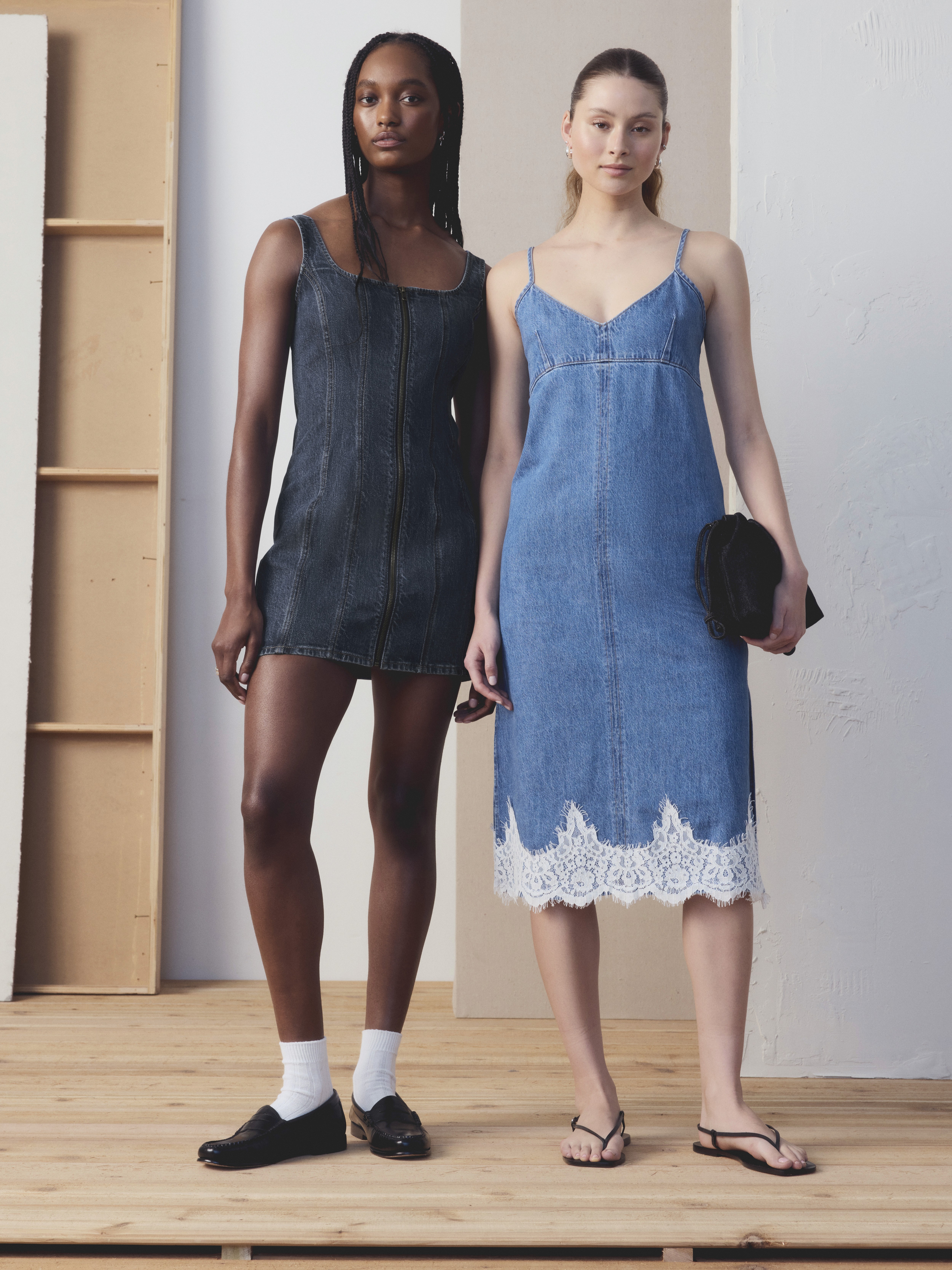 Explore a curated editorial snapshot featuring signature denim dresses designed by Amy Vine. Each look exemplifies premium design language and innovation in women’s denim in various weights & stretch of authentic denim.