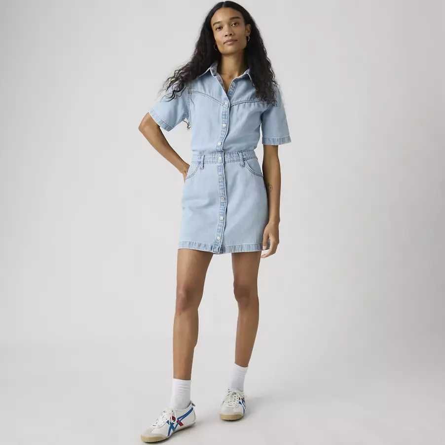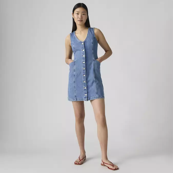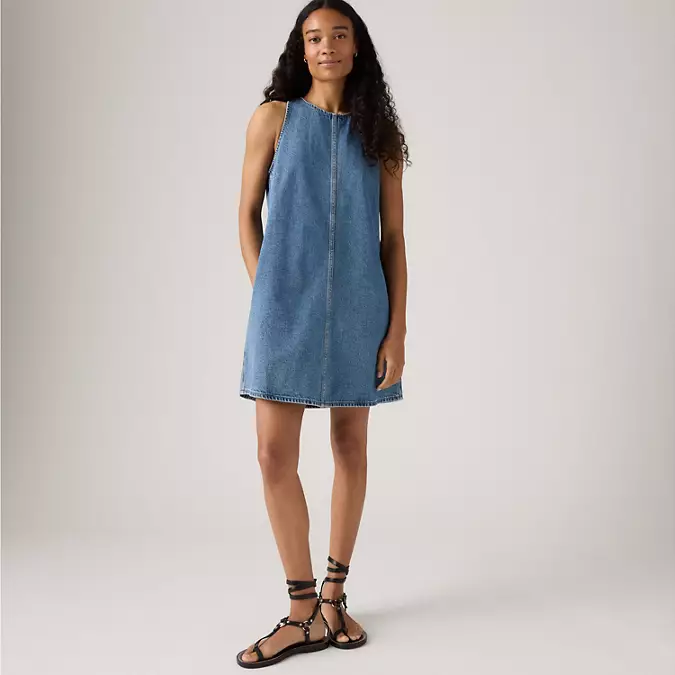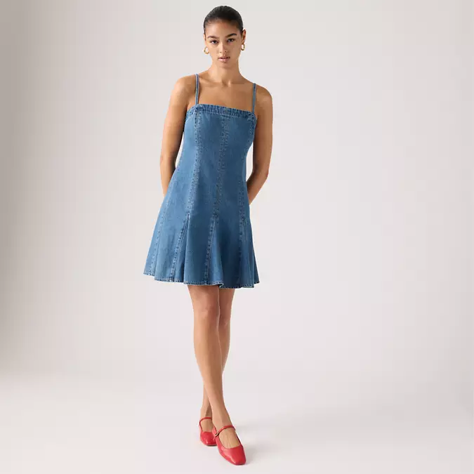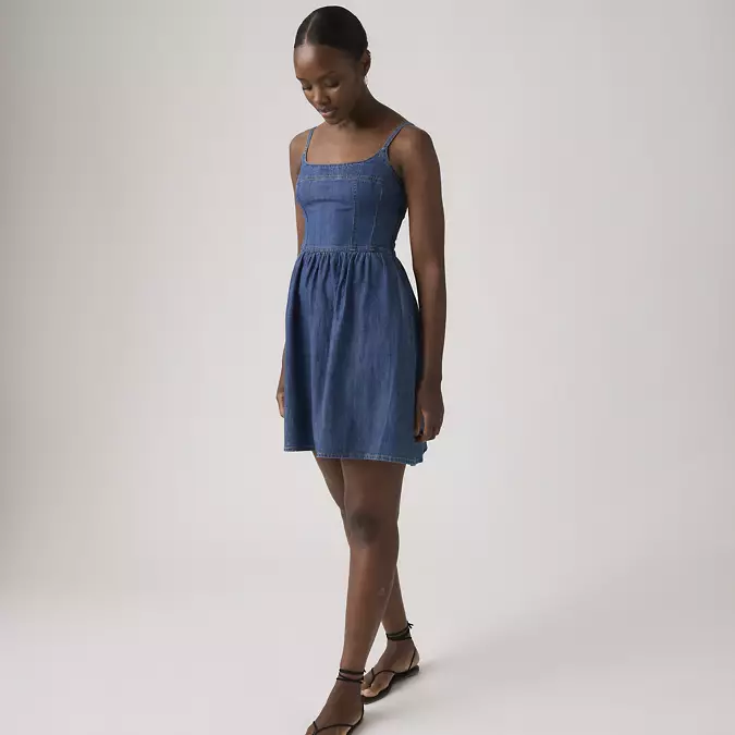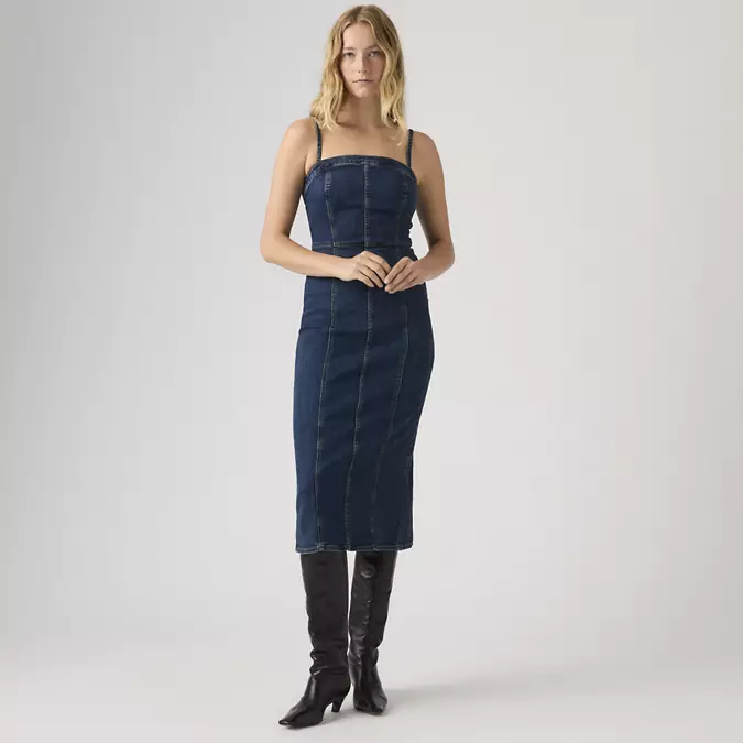 Styles include: 90s Denim Slip Dress, 90s Column Dress, Godet Denim Dress, 90s Shift Dress, Jadine Dress, Seamed Bustier Dress, Iconic Sleeveless Dress, Vianna Dress, LS Retro Zip Dress, Logan Dress, Denim Tee Dress, & Bustier Dress.